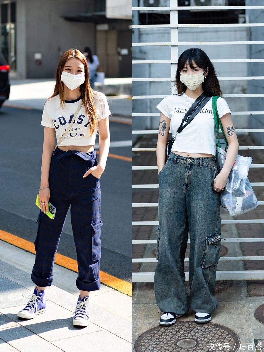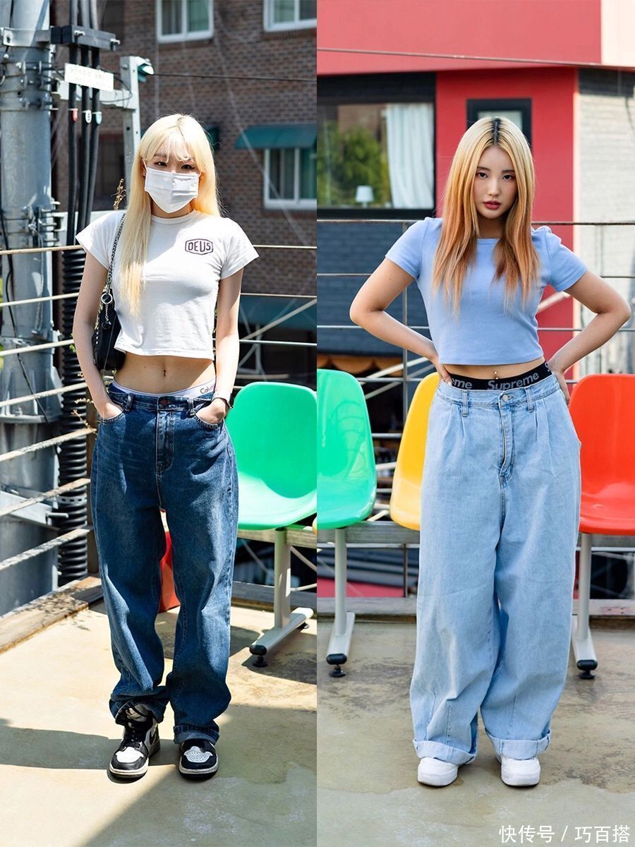 韩国偶像团体繁密,是以她们也相等心爱街舞风穿搭,密斯姐们身上的这两套造型,即是步伐的学习模板,紧身露脐上衣搭配高腰阔腿裤,检朴帅气又能秀体魄。
